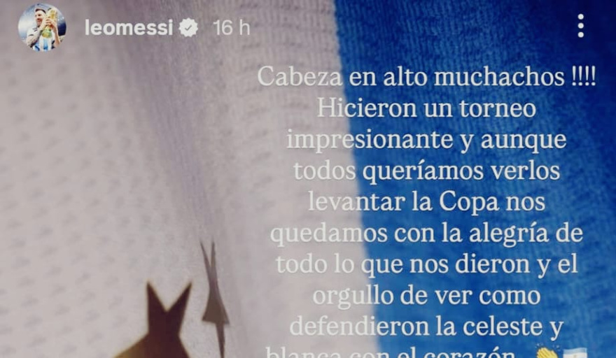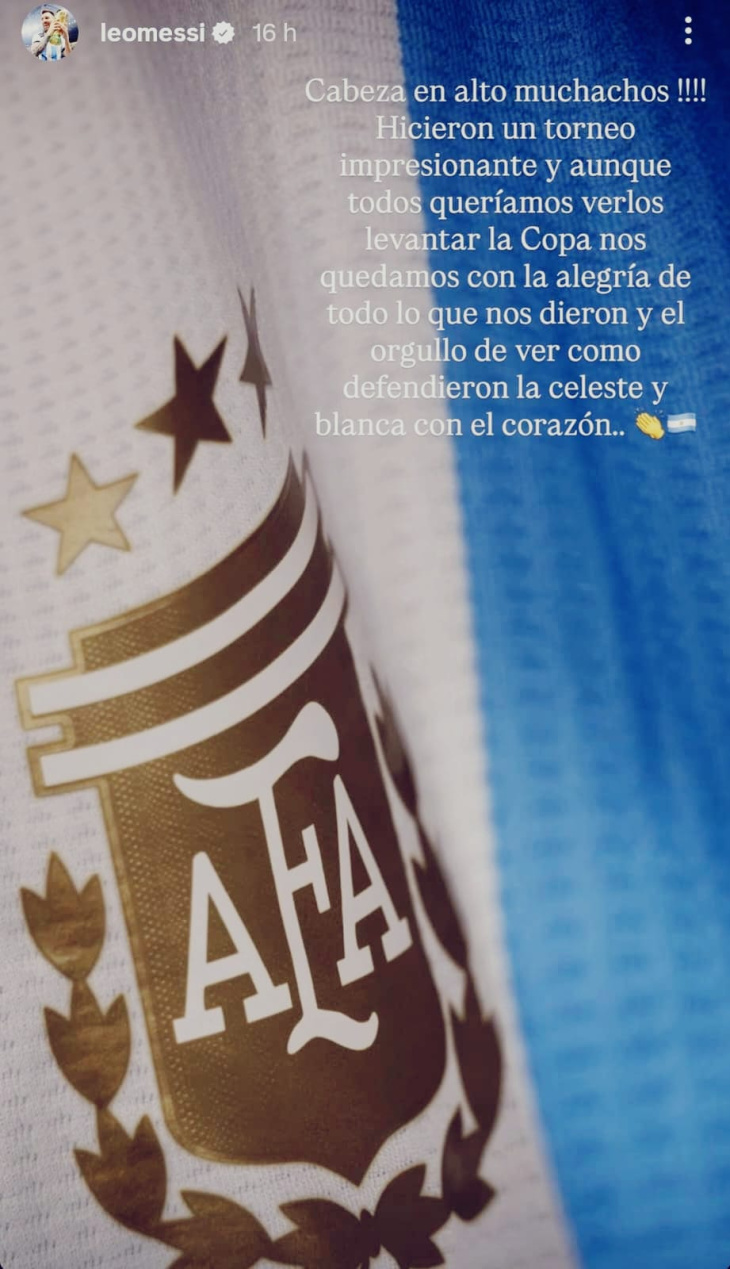 Tras la final, Messi publicó en Instagram un mensaje de apoyo para los chicos del Sub-20: