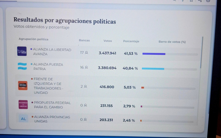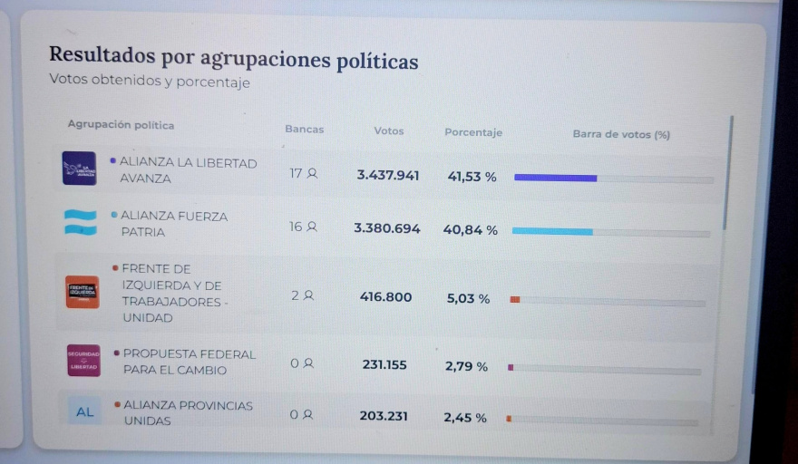De las 35 bancas que se elegían, 17 para la Libertad Avanza, 16 para Fuerza Patria y 2 para Frente de Izquierda