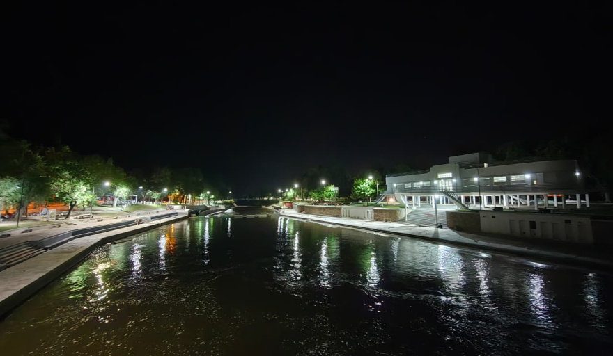 En los últimos días se instalaron nuevas luminarias en ambas márgenes del río, una mejora clave para que vecinos y visitantes puedan disfrutar del sector de playa y del área de parrillas también cuando cae el sol.