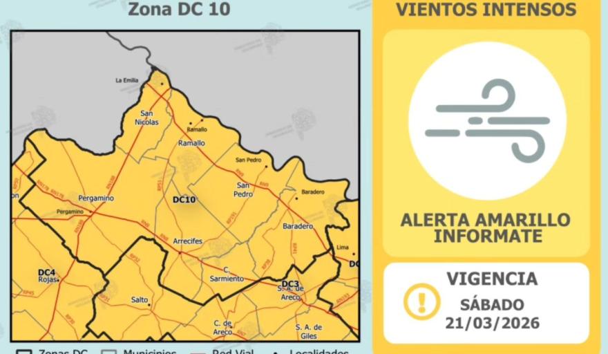Defensa Civil Provincial ha emitido una Alerta Amarilla por vientos intensos para Salto y la zona, con vigencia para la tarde de hoy, sábado.