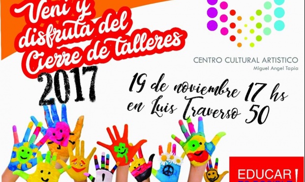 El próximo domingo 19 de noviembre está previsto el cierre de Talleres del Centro Cultural Artístico "Miguel Ángel Tapia" a partir de las 17 horas en la sede de calle Luis Traverso 50.