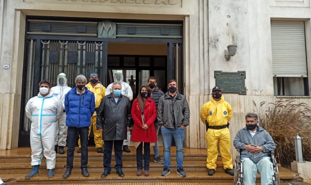 Este martes llegó a Salto "la senadora provincial Agustina Propato, el director de Proyectos Comunitarios de la Subsecretaría de Participación Ciudadana del Ministerio de Seguridad Santiago Sanguinetti, el articulador del Ministerio de Desarrollo Social de la Nación, Palito Morales y al subsecretario de Relaciones con la Comunidad Pablo Fernández en el marco de la realización de una jornada de sanitización para cuidar a las y los vecinos y, especialmente, al personal de salud que cumple un rol imprescindible en esta pandemia.